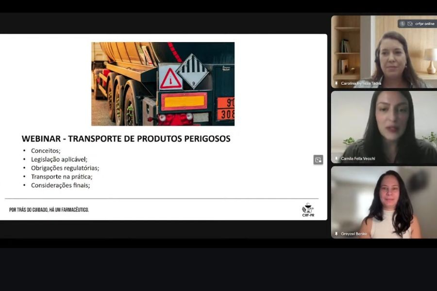 No dia 07 de maio, o Conselho Regional de Farmácia do Paraná (CRF-PR) realizou o Webinar: Transporte de Produtos Perigosos, um evento online voltado a farmacêuticos que atuam na área de logística, com o objetivo de ampliar os conhecimentos sobre o transporte de substâncias químicas perigosas e controladas. A atividade teve grande adesão e trouxe esclarecimentos técnicos essenciais sobre legislações, responsabilidades e práticas relacionadas ao tema.
