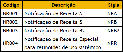 As Notificações de Receita são identificadas conforme os códigos a seguir: